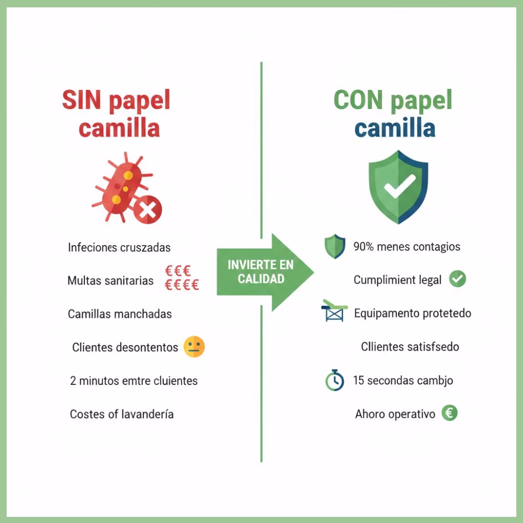 Cada rollo de papel camilla que usas protege tu negocio, cuida a tus clientes y mejora tu reputación profesional. En un sector donde la confianza lo es todo, estos pequeños detalles marcan la diferencia entre un centro del montón y un referente de calidad.