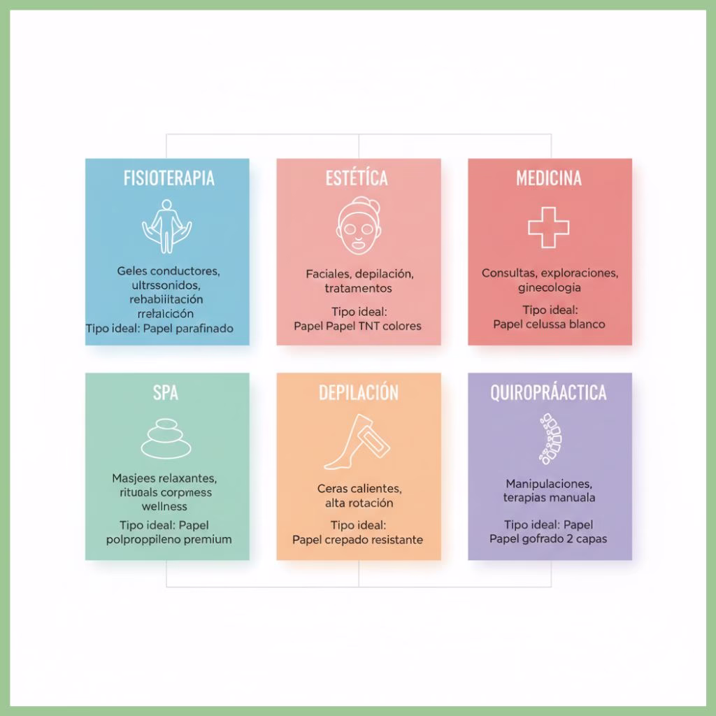 Los centros de estética suelen optar por papel camilla de colores (rosa, lila, azul) para crear ambiente y diferenciarse.
