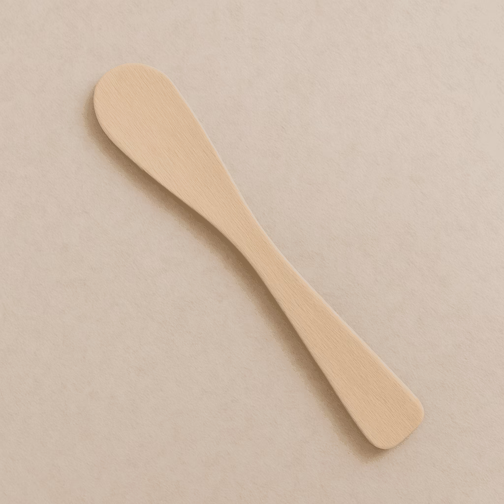 Fabricada con madera natural de alta calidad, esta espátula ofrece una excelente resistencia al uso diario, no se deforma con facilidad y es suave al tacto, ideal para trabajar sobre superficies delicadas, incluyendo la piel. Su forma redondeada tipo cuchara permite recoger y distribuir productos de manera uniforme, evitando derrames o desperdicios.